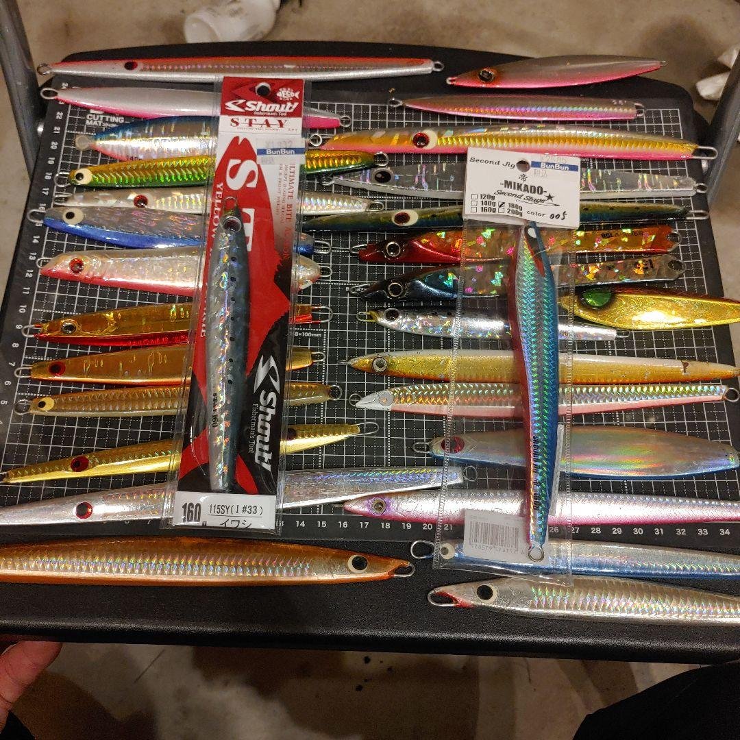 ご覧いただきありがとうございます!どちらも新品購入後数回使用しました。ピンクバックの方はシングルフックで数投なので目立つキズはありません。ブラックバックの方はトレブルで何度か使用しておりそれなりにキズがあります。トレブルフックの方はプライヤーでバーブを潰しています。どちらもフックを付けたまま発送いたします。中古品にご理解のある方ご検討よろしくお願いいたします。#マグロ#ヒラマサ#キャスティング